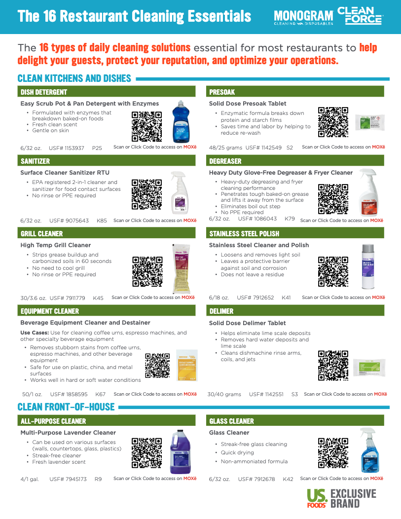 The 16 types of daily cleaning solutions essential for most restaurants to help delight your guests, protect your reputation, and optimize your operations.